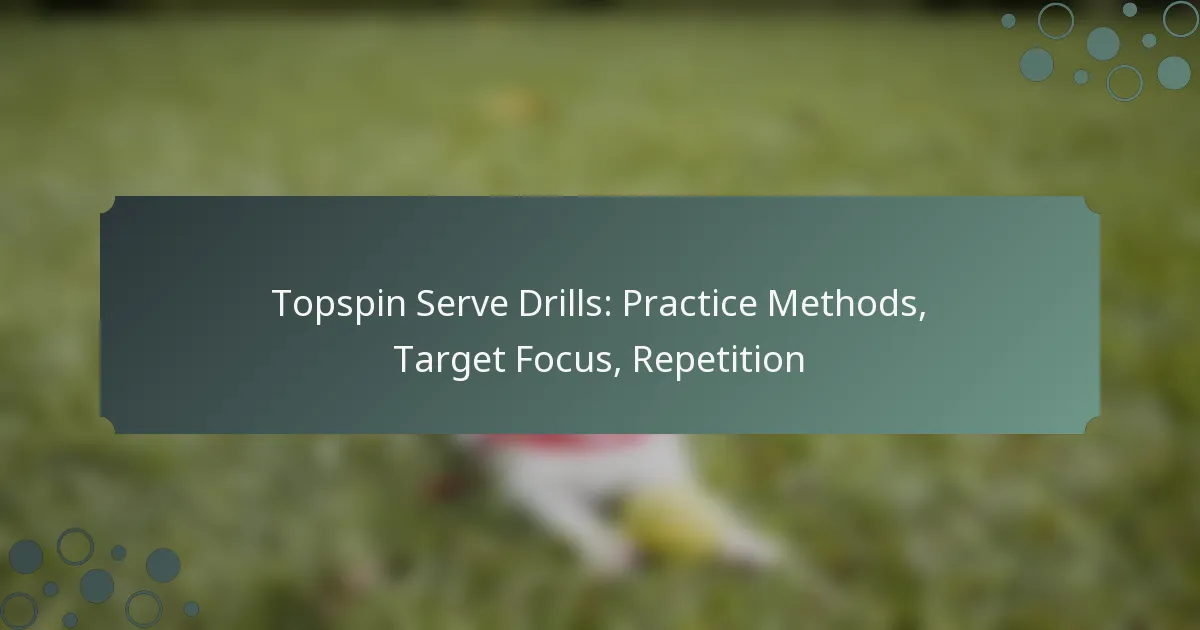 Mastering the topspin serve requires dedicated practice methods that incorporate solo drills, partner exercises, and precise footwork. By focusing on specific target areas during practice, players can enhance their accuracy and adapt their serves to counter opponents effectively. Consistent repetition is essential for developing muscle memory, allowing players to refine their technique and improve their overall performance on the court.